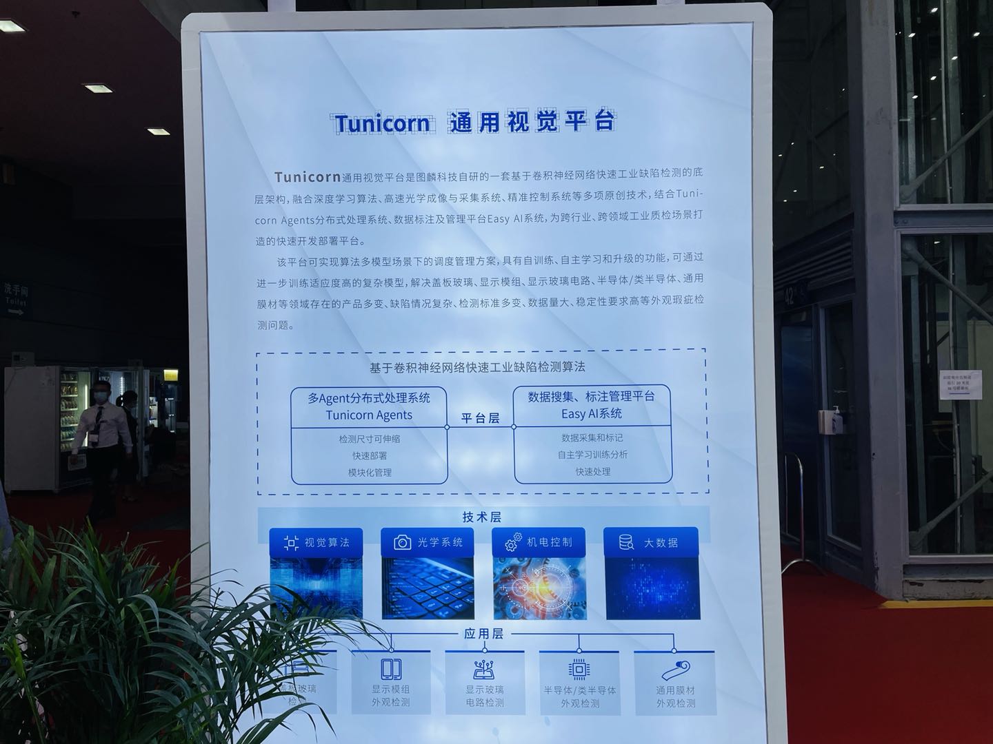 在去年展会上首次发布的工业级Tunicorn通用视觉平台,是YABO鸭脖科技为跨领域工业质检场景打造的、基于卷积神经网络的快速工业检测算法的底层架构,融合了视觉算法、光学系统、机电控制、大数据等多项原创技术,并取得了进一步突破: